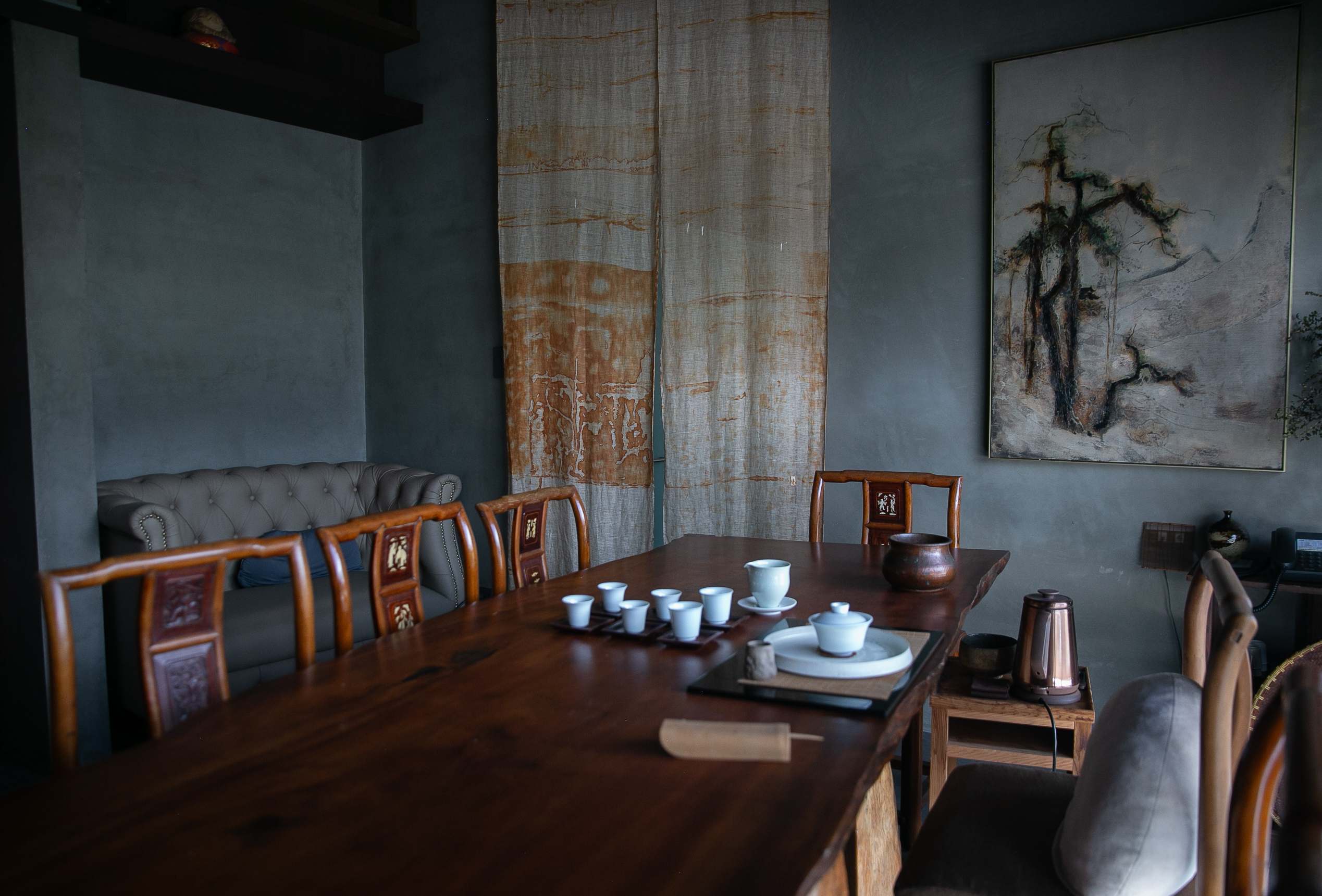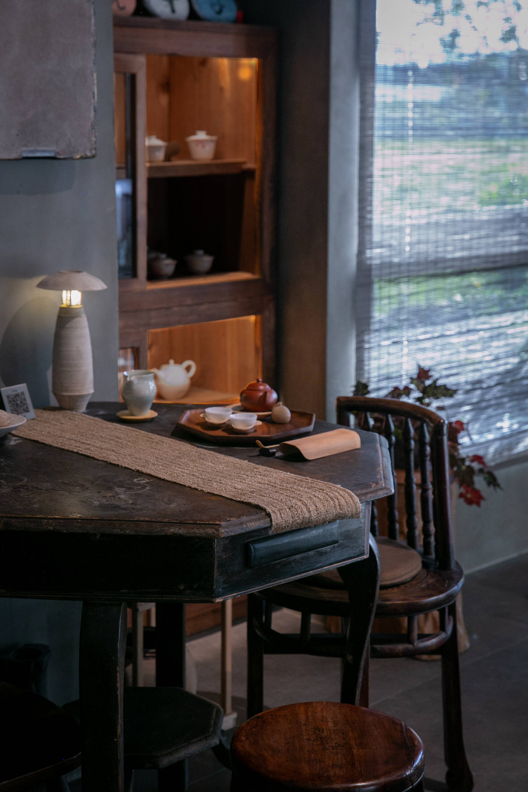 Where pines sway outside the windowSpace Introduction:“Songting” takes its name from the pine trees visible just beyond the window. Soft light filters through the branches, casting shifting patterns across a solid wood tabletop. Antique wooden chairs with curved backs bring a quiet sense of warmth and age.