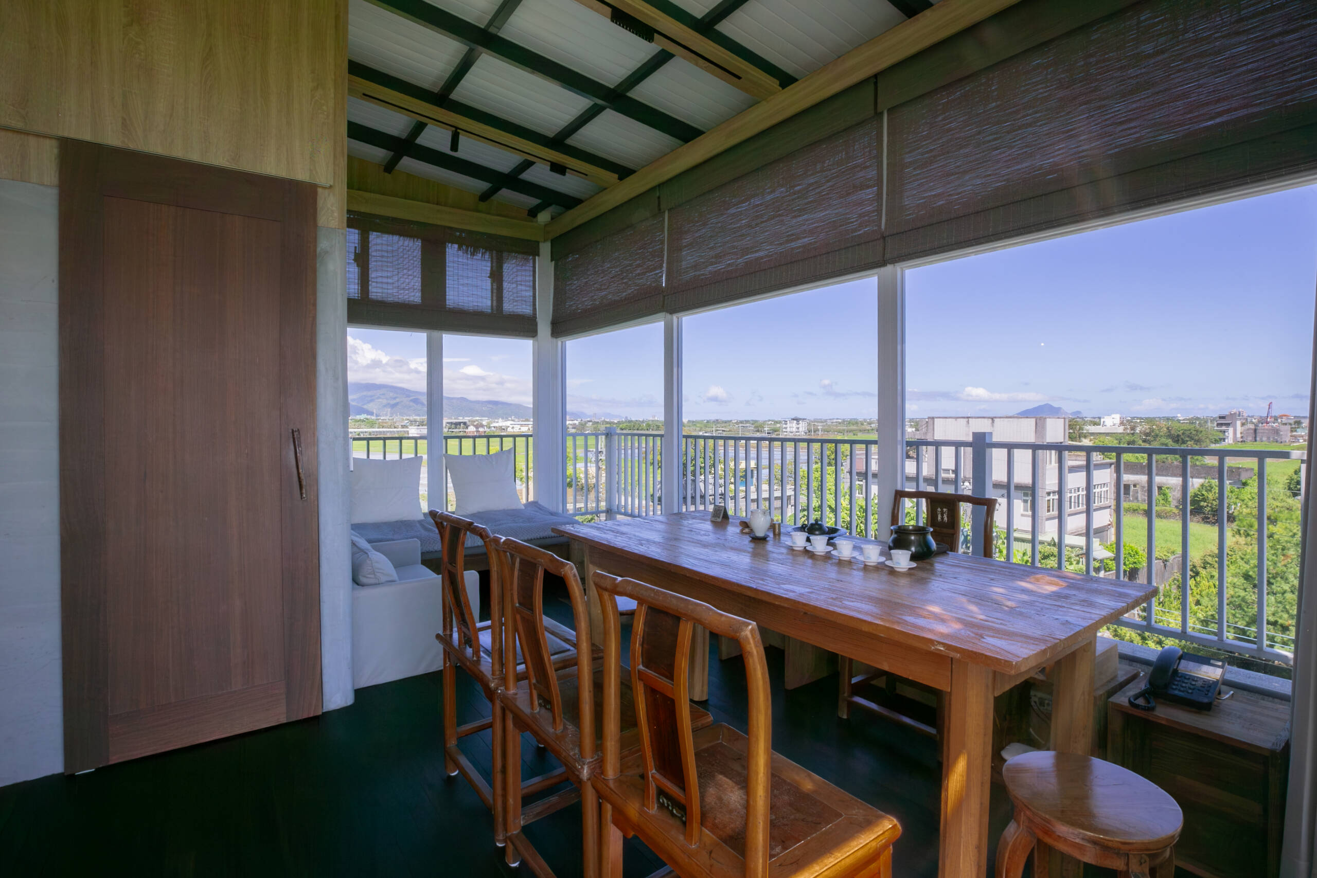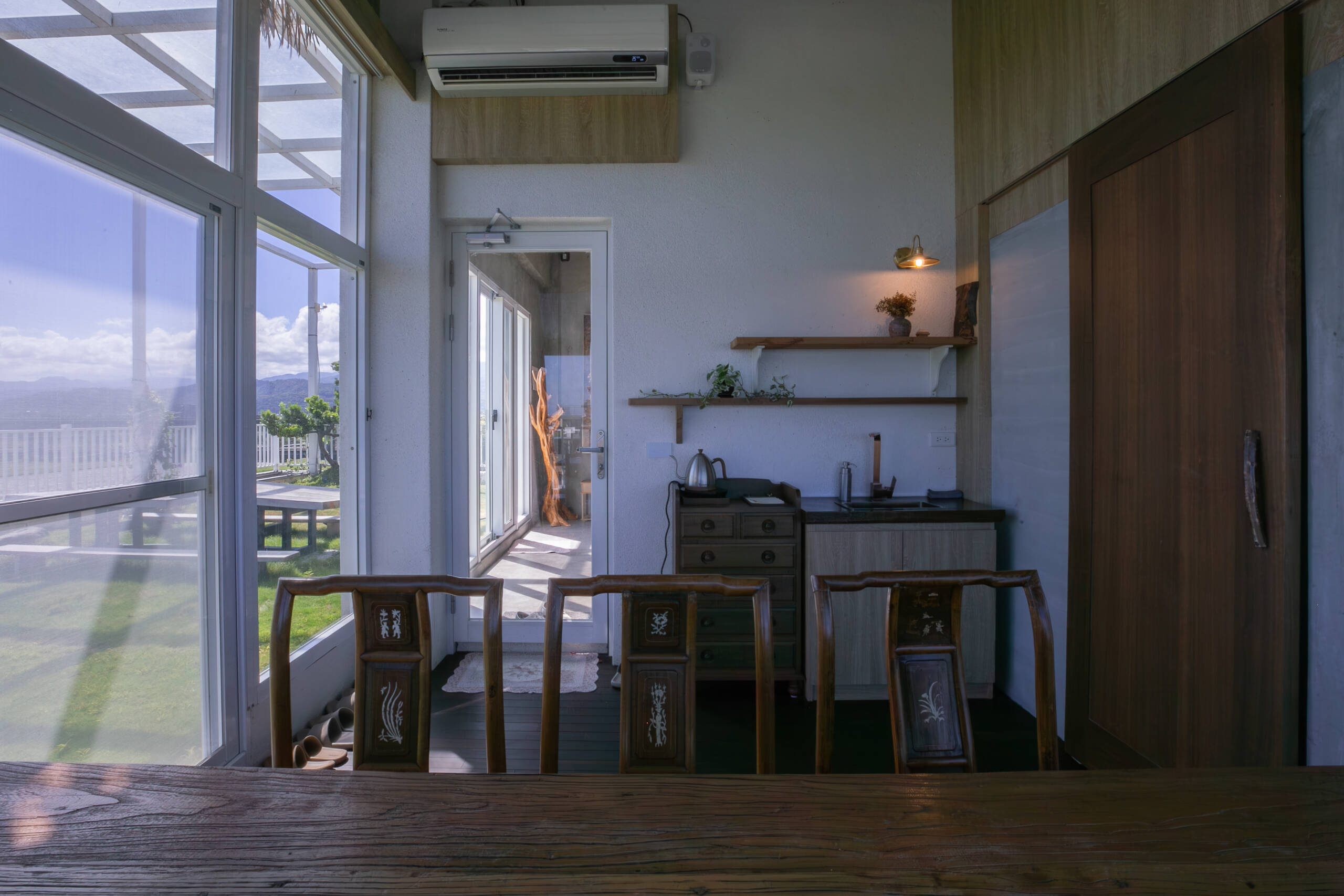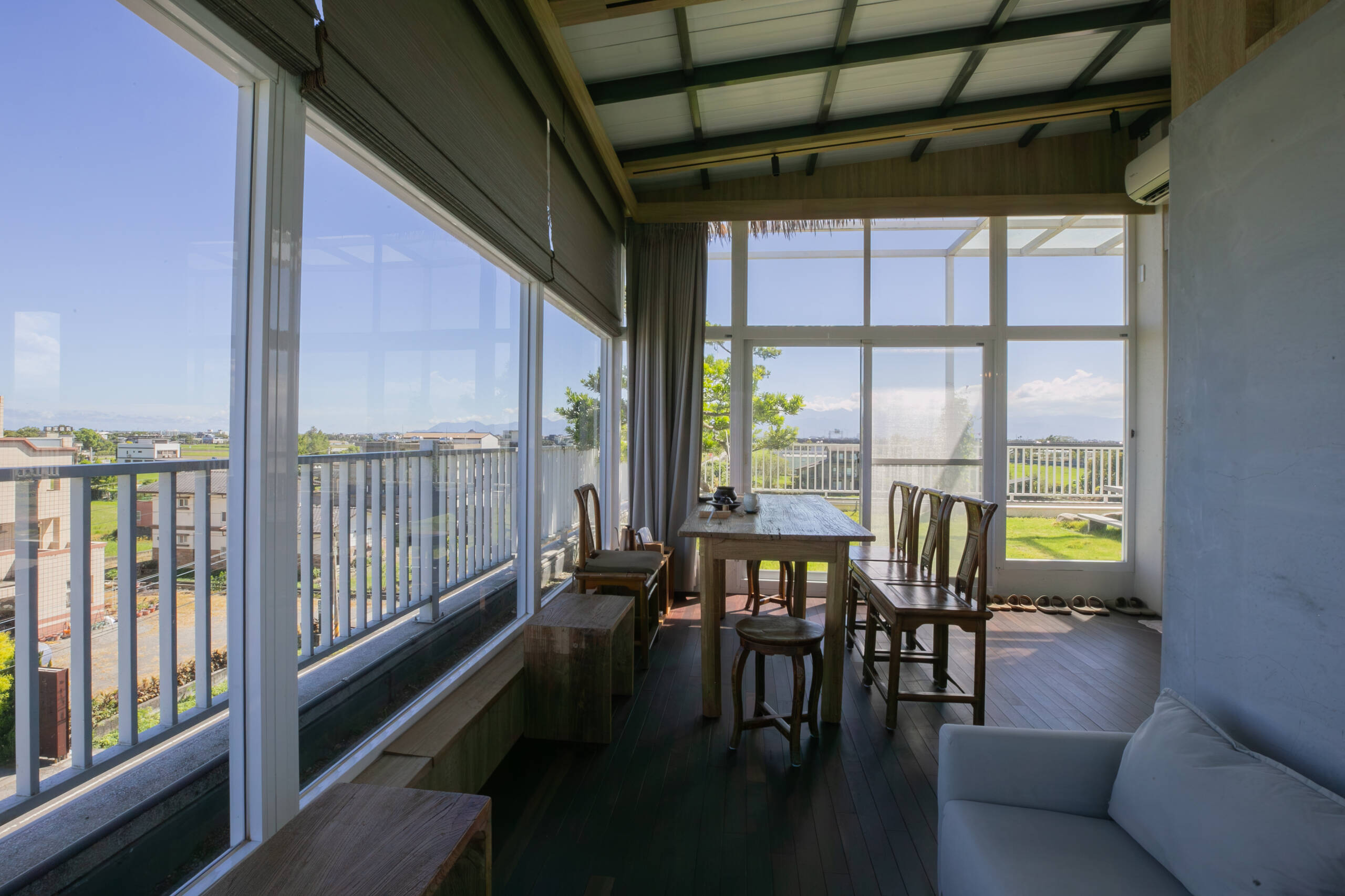 屋頂 觀雲(包層)遠望龜山島與群山的獨立頂樓空間。頂樓整層以「觀雲」為名,為獨立使用的包層空間。 室內設有可容納六人以下的桌席與沙發區, 戶外延伸為草地露台, 可眺望東側的龜山島與西側遠山。 這是一處開闊而靜謐的場所, 適合小型聚會, 休憩, 或靜靜看雲的時光。