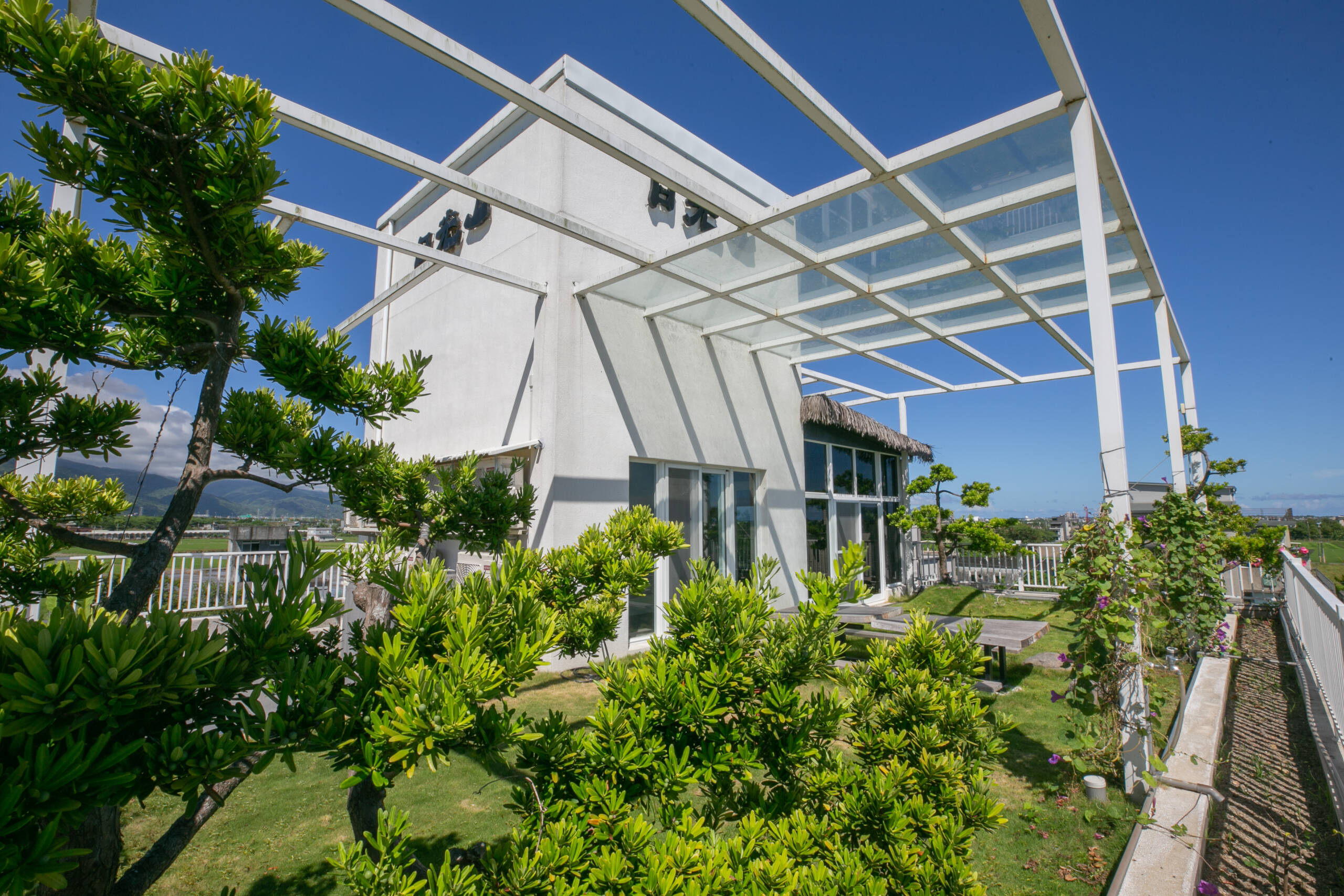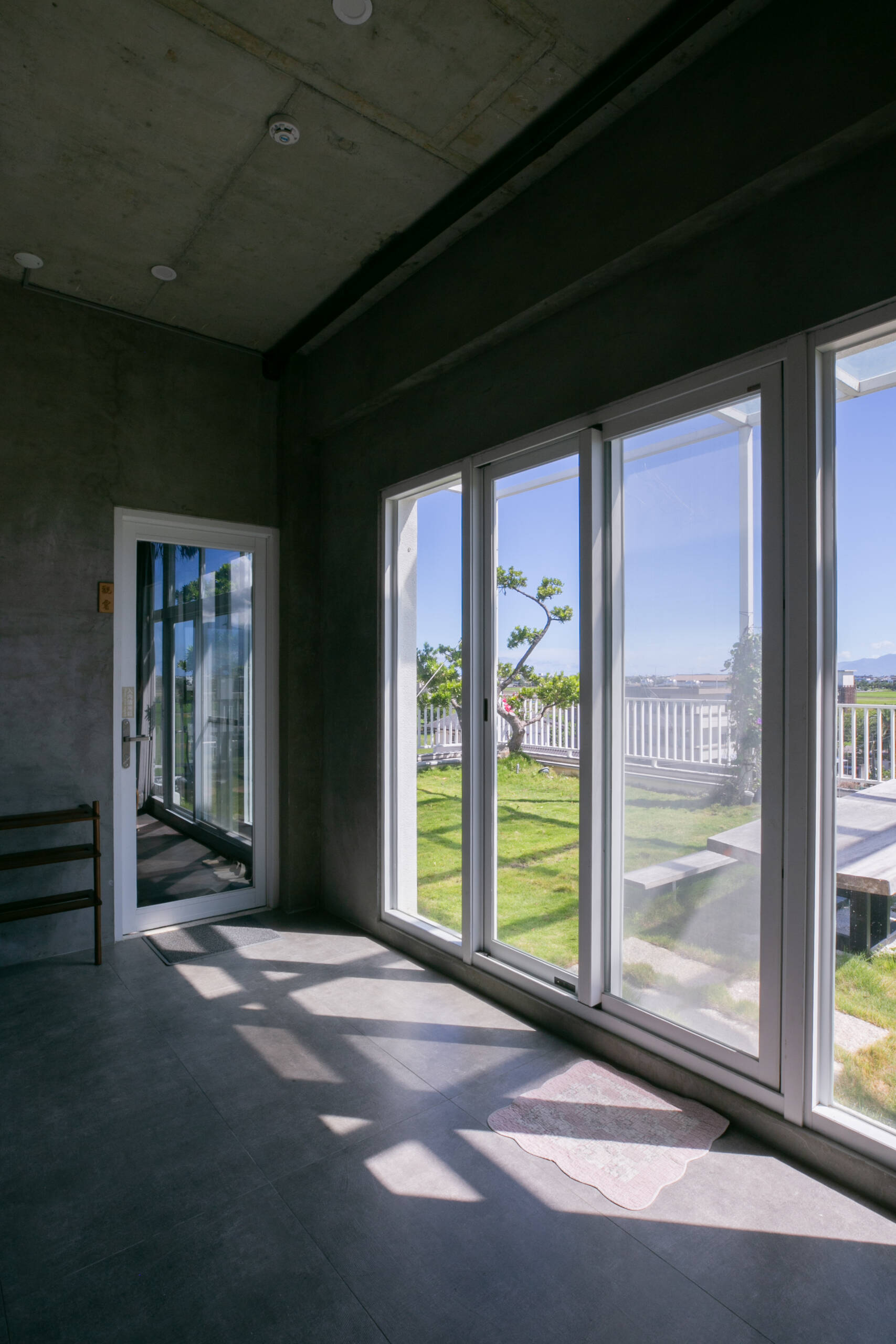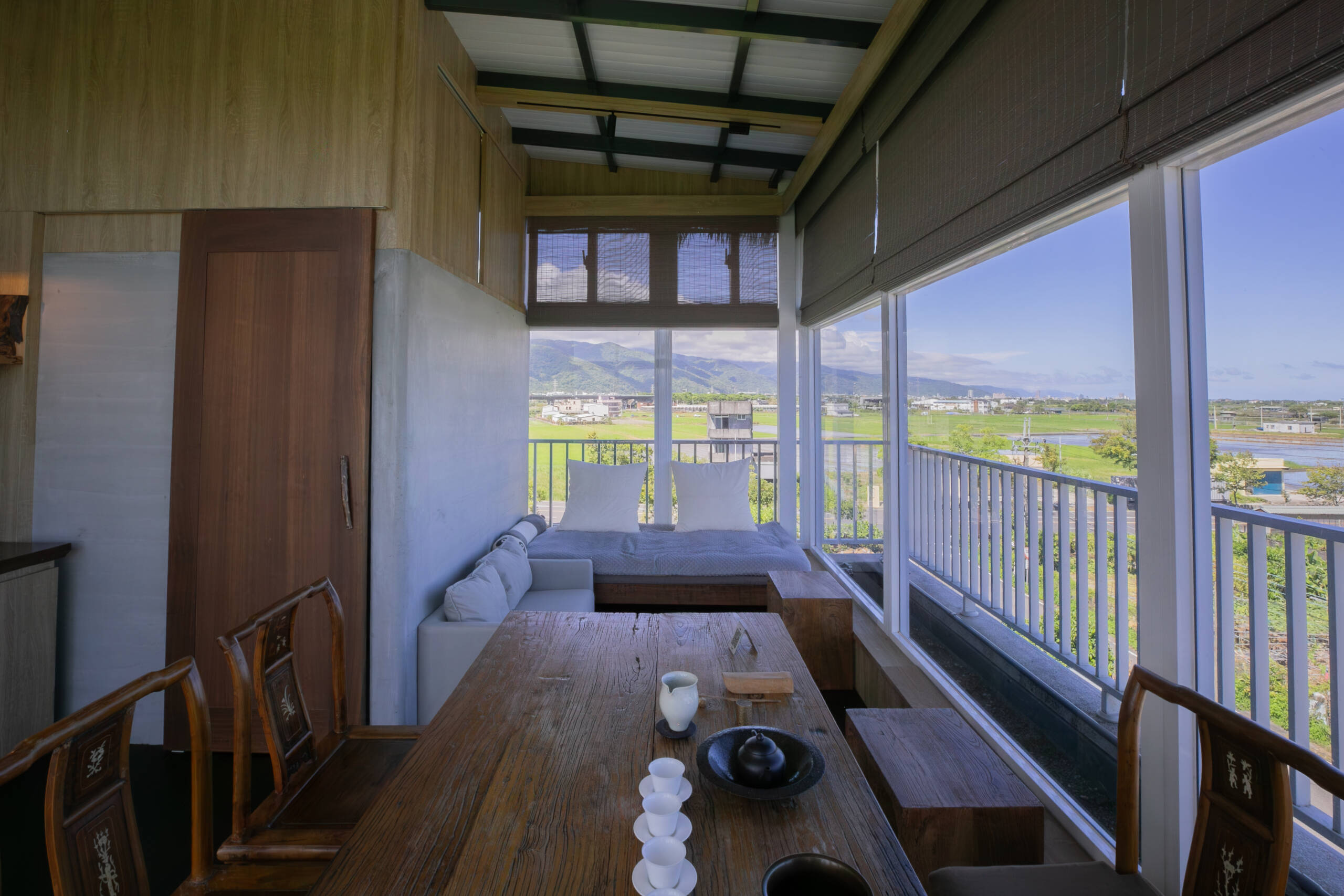 屋頂 觀雲(包層)遠望龜山島與群山的獨立頂樓空間。頂樓整層以「觀雲」為名,為獨立使用的包層空間。 室內設有可容納六人以下的桌席與沙發區, 戶外延伸為草地露台, 可眺望東側的龜山島與西側遠山。 這是一處開闊而靜謐的場所, 適合小型聚會, 休憩, 或靜靜看雲的時光。